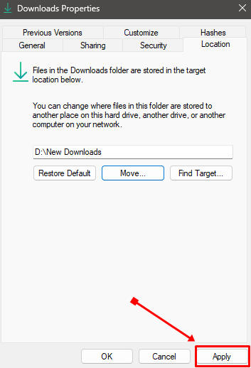 6. Por último, haga clic en elAplicarbotón para cambiar la ubicación.