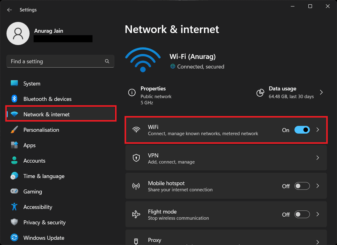 - En el lado derecho, haga clic en su servicio de red, es decir,wifioEthernet(si corresponde).