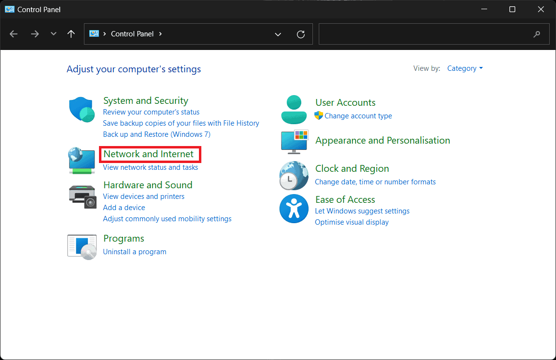 - Haga clic en elRed e Internetpestaña en la pestaña izquierda.