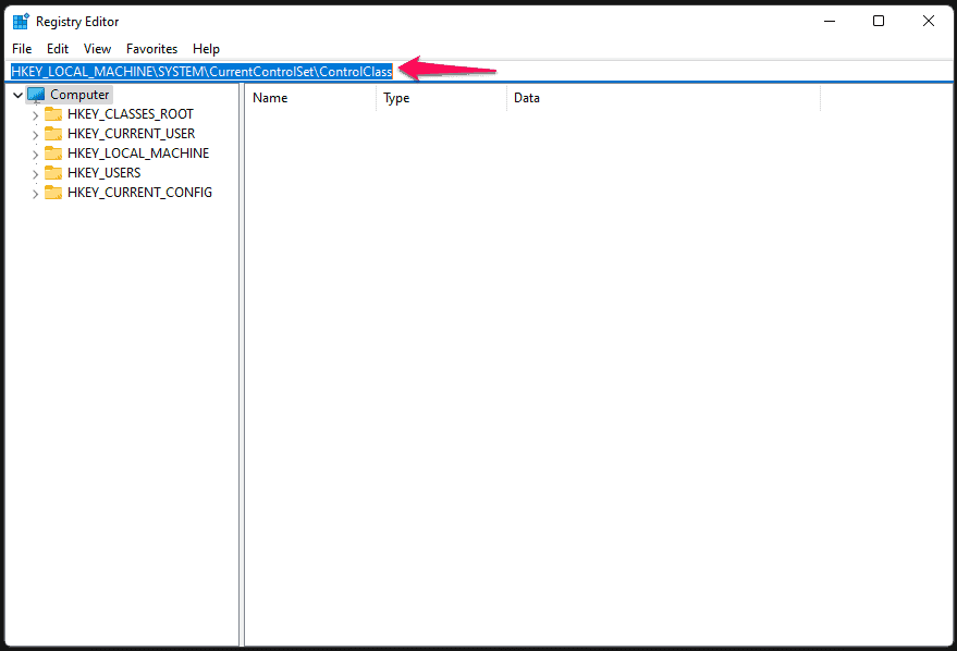 - Vaya a la ubicación "HKEY_LOCAL_MACHINESYSTEMCurrentControlSetControlClass{4D36E972-E325-11CE-BFC1-08002BE10318}" en el registro.
