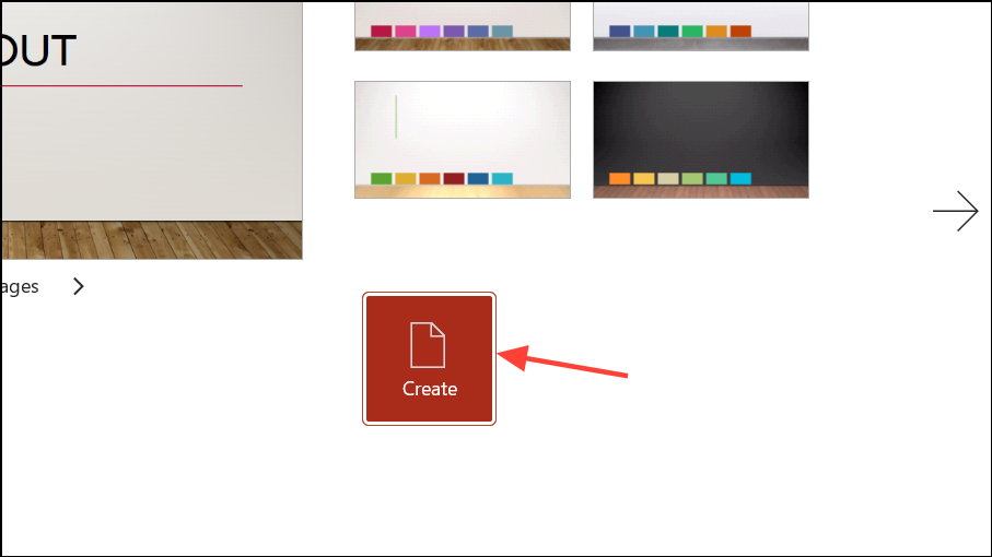 Paso 2:En la barra de búsqueda, escribetimelinepara ver las plantillas de línea de tiempo disponibles. Explore los resultados y haga clicCreateen su plantilla preferida para abrirla como una nueva presentación.