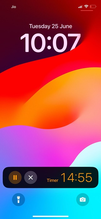 6. Una vez iniciado, bloquea la pantalla de tu iPhone. Vas aver el cronómetro en la pantalla de bloqueo.