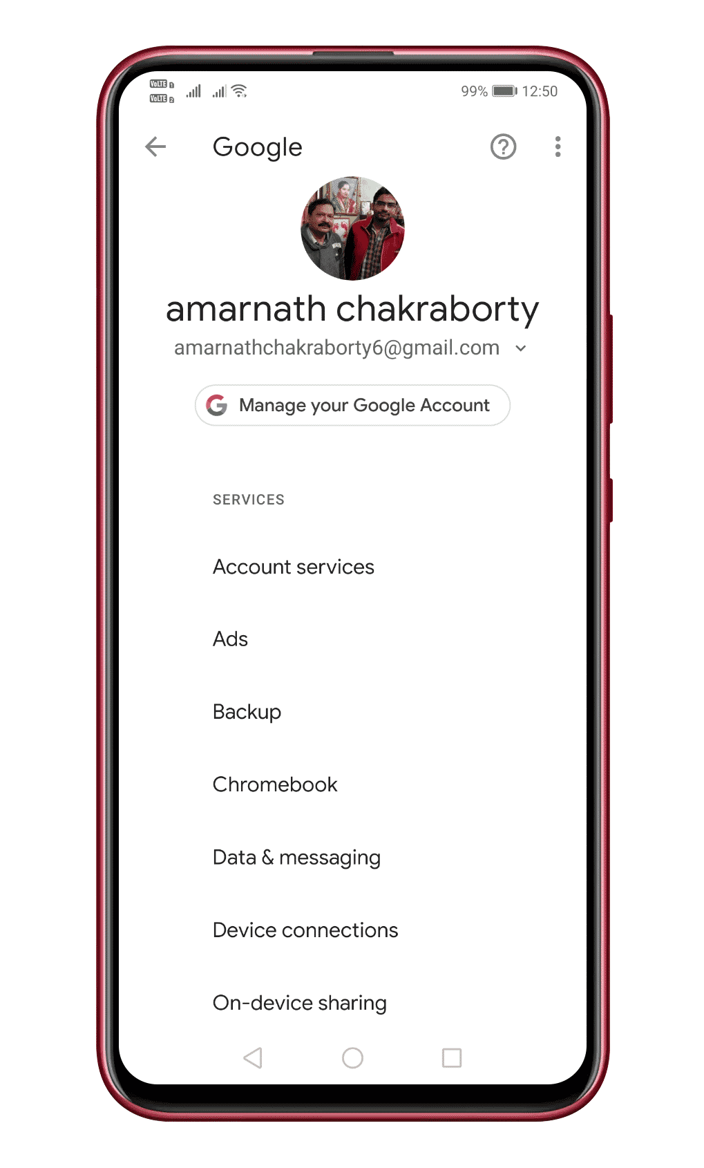 - Una vez eliminado, reinicie su dispositivo Android y luego vuelva a agregar la cuenta de Google.
