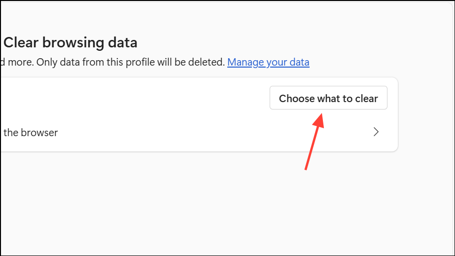 Paso 3:Desplácese hacia abajo hasta elClear browsing datasección y seleccioneChoose what to clear.