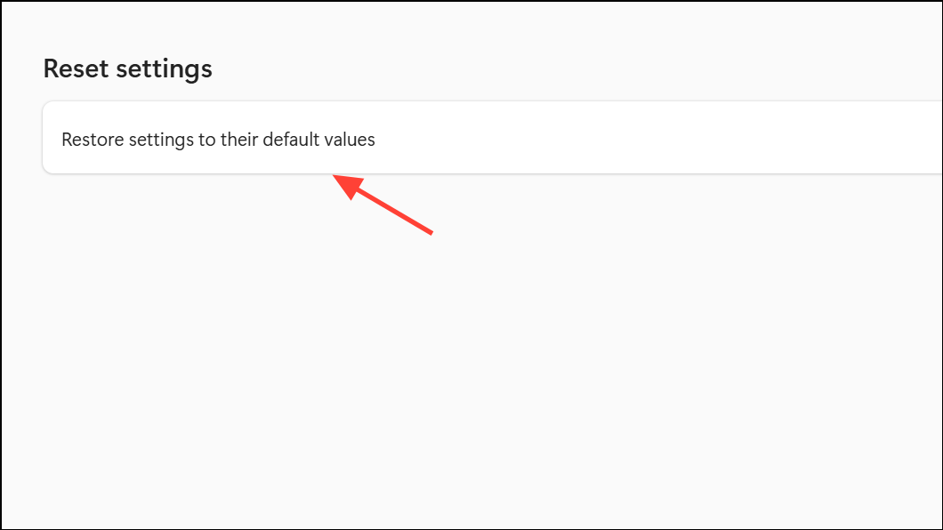 Paso 3:SeleccionarRestore settings to their default valuesy confirme haciendo clicReseten la ventana emergente.