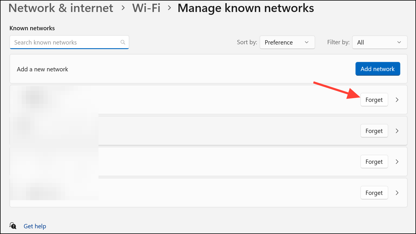 Vuelva a conectarse u olvídese y vuelva a unirse a la red WiFi