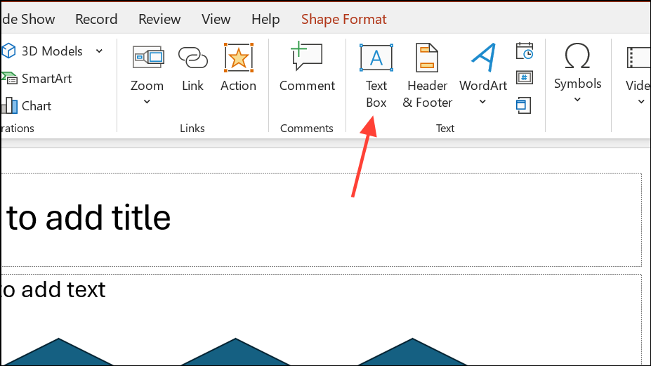 Paso 4:Agregue texto seleccionando cualquier forma y escribiendo directamente en ella. Para etiquetar flechas o conectores, utilice elText Boxherramienta de laInsertpestaña. Dibuja el cuadro de texto cerca de la línea e ingresa tu etiqueta.