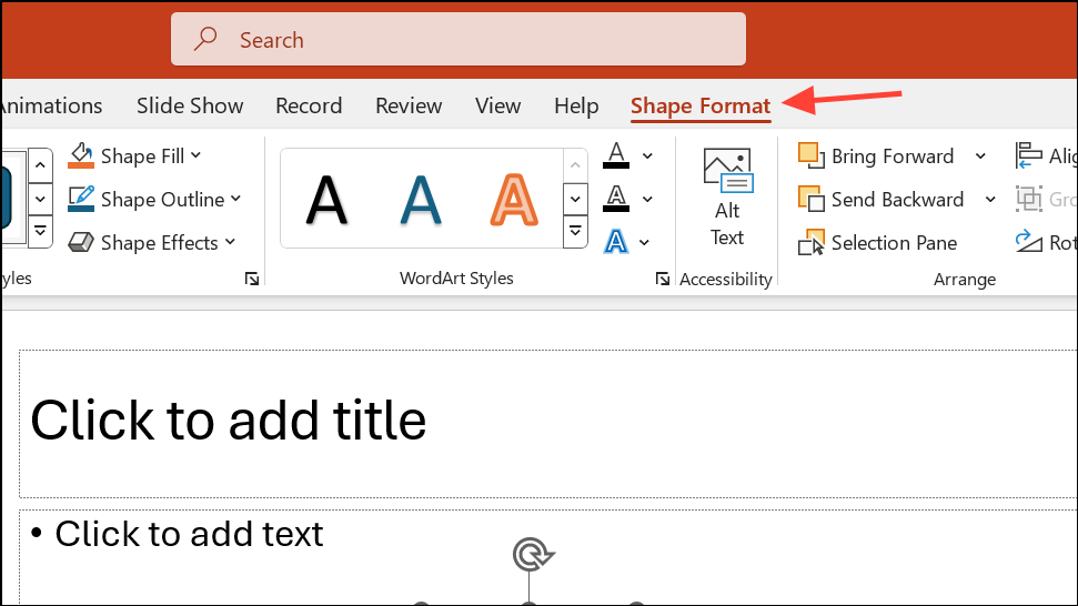 Paso 5:Personalice los colores, bordes y efectos de las formas seleccionando una forma y usando elShape Formatpestaña. Ajuste el color de relleno, el contorno, la sombra u otras propiedades visuales para que coincidan con el estilo de su presentación o para enfatizar los pasos clave.