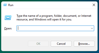 - Abre elEjecutar cuadro de diálogoCaja presionando el botónWindows + Rcombinación de teclas.