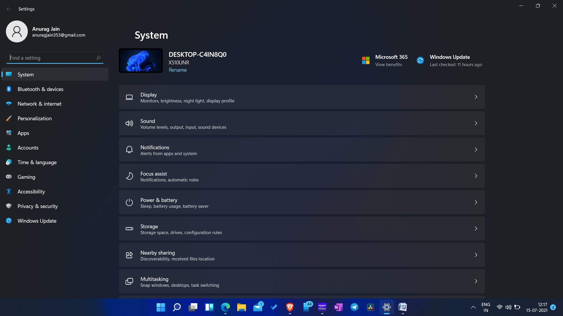 - Asegúrate de estar en elSistemasección en elAjustes.Si no es así, haga clic en elSistemapestaña en la barra lateral izquierda.