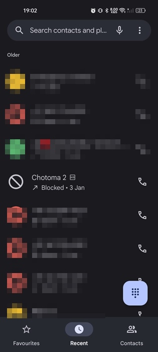 3. También encontrará las entradas de los números de teléfono bloqueados en la lista de llamadas recientes.
