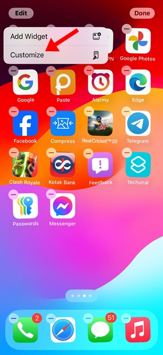 2. Vaya a la pantalla de inicio de su iPhone. y mantenga presionado en un área vacía.