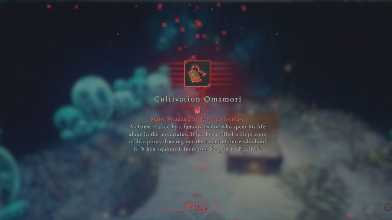 Utilice accesorios como Cultivation Omamori después de completar el juego para acelerar el proceso de actualización al convertir la moneda del juego en Weapon EXP.
