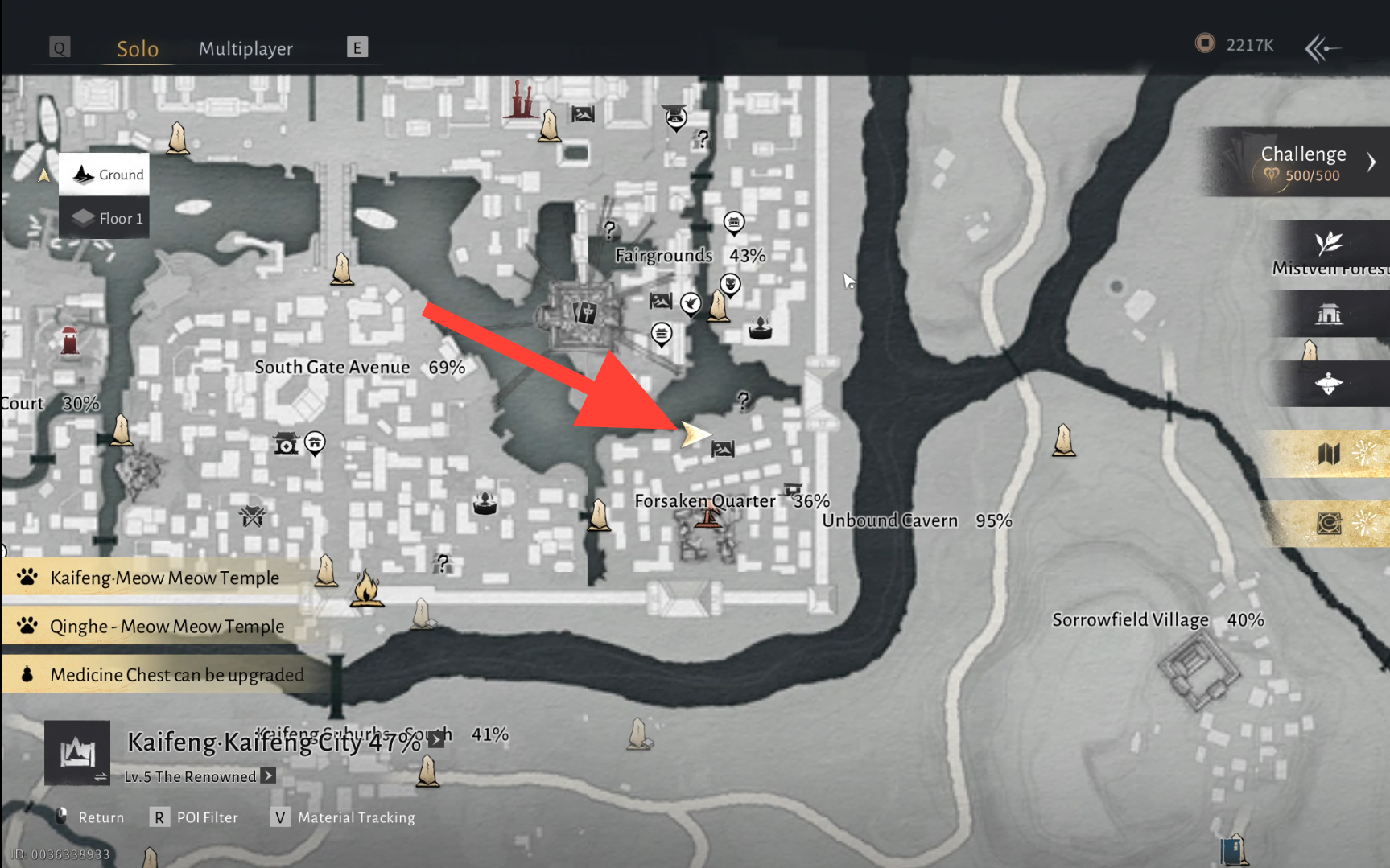Para comenzar este cuento errante, dirígete a la ubicación marcada en el Barrio Abandonado, ciudad de Kaifeng, ingresa a la casa y habla con Zhang Gongcheng para comenzar el cuento.