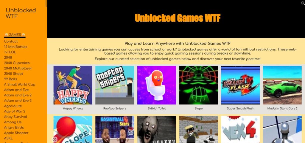 Al contrario de su descarado título, Unblocked Games WTF es seguro, apto para familias y con publicidad ligera, y no tiene nada de extraño aparte del hecho de que tienen cientos de juegos populares en un sitio que no está bloqueado por su escuela o red de trabajo.