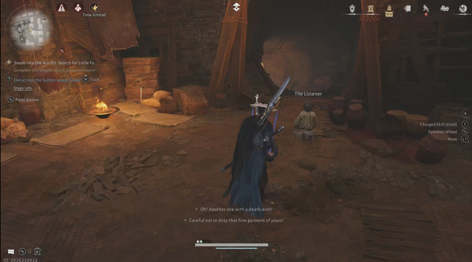 A medida que avanzas, te encontrarás con miembros de Unbound Cavern que han atado a un discípulo de Nine Mortal Ways. A partir de aquí, comienza la misión secundaria "Caverna desatada". Debes completar esta misión para avanzar más.