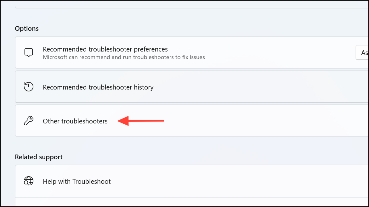 Paso 2:Vaya a "Solucionar problemas" y haga clic en "Otros solucionadores de problemas".