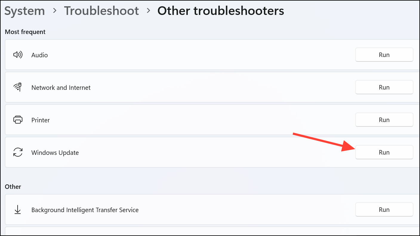 Paso 3:Busque "Windows Update" y haga clic en "Ejecutar". Siga las instrucciones que aparecen en pantalla y aplique las correcciones sugeridas.
