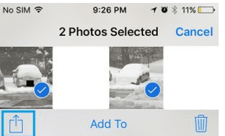 Seleccione el"Agregar a notas"opción en el"Compartir"menú. A continuación, toque el"Ahorrar"opción para guardar las fotos seleccionadas en el“Notas”aplicación.