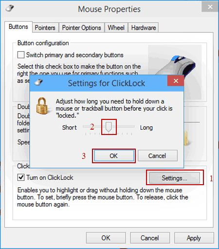 Deberías utilizar la función ClickLock de Windows.cuando necesitas presionar el botón del mouse durante mucho tiempo. Para jugar y escribir, esta función es útil.