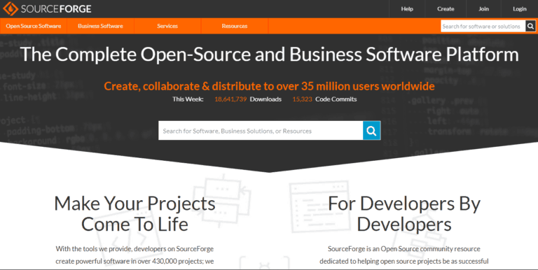 SourceForge ha distribuido software a más de 35 millones de usuarios. Puede descargar su software de forma gratuita desde SourceForge. Si eres desarrollador, puedes colaborar con ellos para ayudarlos con sus proyectos.
