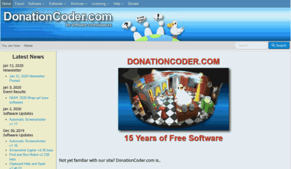 Donation Coder es un sitio con un modelo único. Te permite descargar el software más reciente, pero a cambio solo pide una donación.