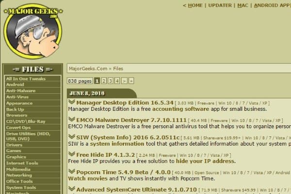 Con una interfaz tradicional, MajorGeeks se parece a cualquier otro sitio de torrents. Sin embargo, es uno de los sitios más rápidos para descargar software gratuito.