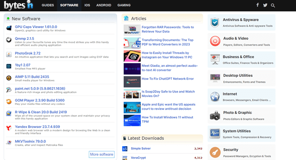 Bytesin no es tan popular como otros sitios web, pero es una excelente fuente para descargar software de Windows.