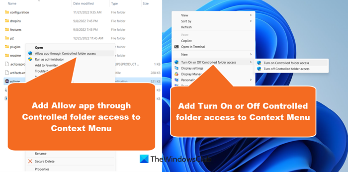 protege su computadora contra malware. Puedes configurarlo desde Windows Defender. Si desea acceder fácilmente a la Carpeta controlada, podemos agregarla al Menú contextual para que pueda acceder a ellos con solo hacer clic derecho. En esta publicación, discutiremos cómo agregarActivar o desactivar el acceso controlado a carpetas&Permitir la aplicación a través del acceso controlado a la carpetaal menú contextual en Windows 11/10.