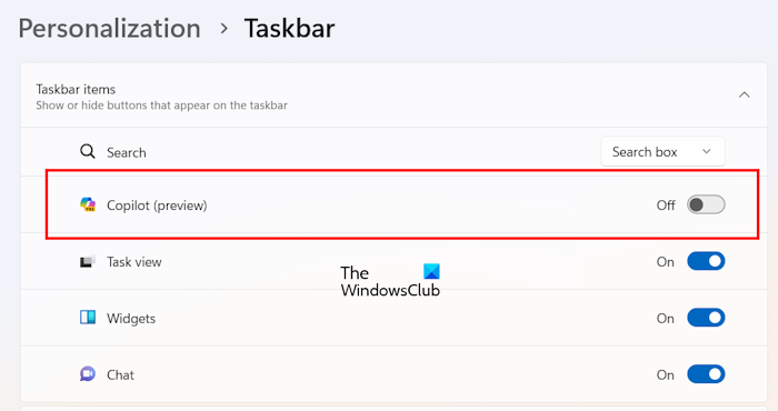 Es bastante sencillo habilitar Windows Copilot en Windows 11. Para hacer lo mismo, vaya aAjustes,y luego haga clic enPersonalización > Barra de tareas.BajoElementos de la barra de tareas,verásCopiloto (vista previa),simplemente habilite la palanca relacionada con él. En caso de que no te guste,de la misma manera.