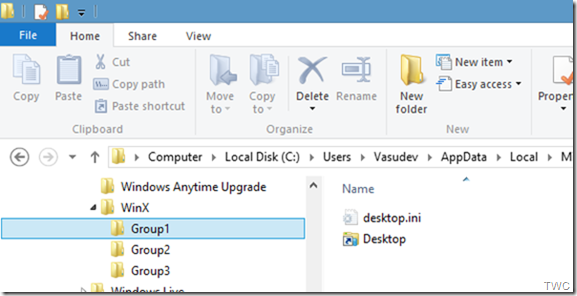 Ahora en el Explorador de archivos, vaya aC:\Usuarios\Nombre de usuario\AppData\Local\Microsoft\Windows\WinX, dónde<UserName> es el nombre de su cuenta.