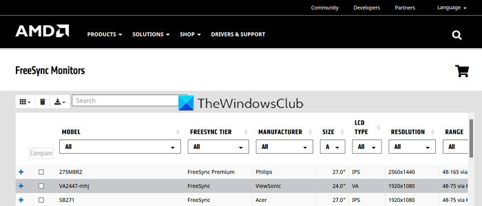 No todos los monitores son compatibles con AMD FreeSync. Debes comprobar si tu monitor es compatible con AMD FreeSync. Para encontrarlo, primero, conozca el número de modelo de su monitor e ingrese el número de modelo en el cuadro de búsqueda de AMD.sitio web oficial.