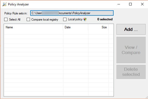 Haga clic en "PolicyAnalyzer.exe" y verá aparecer la ventana principal en su pantalla como se muestra a continuación.