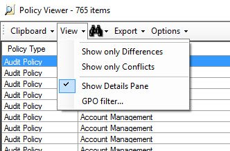 Entonces, con las ventanas del Visor de políticas, puede analizar, ver y comparar conjuntos de objetos de políticas de grupo.