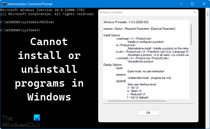 si lo eresNo se puede instalar o desinstalar un programa, software o aplicación.en Windows 11/10, esta publicación ofrece sugerencias para ayudar. Este problema puede deberse a archivos corruptos del sistema operativo o a la configuración o interferencia de software de terceros. Si te enfrentas a este problema, sigue leyendo.