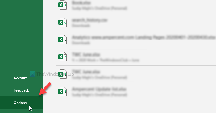 Para comenzar, debe abrir Excel en su computadora. Si ya ha abierto una hoja de cálculo, haga clic en elArchivoopción de la barra de menú superior. Después de eso, debe hacer clic en elOpcionesbotón. En caso de que no haya abierto una hoja de cálculo, puede encontrar laOpcionesbotón derecho en su pantalla después de abrir Excel en su computadora.