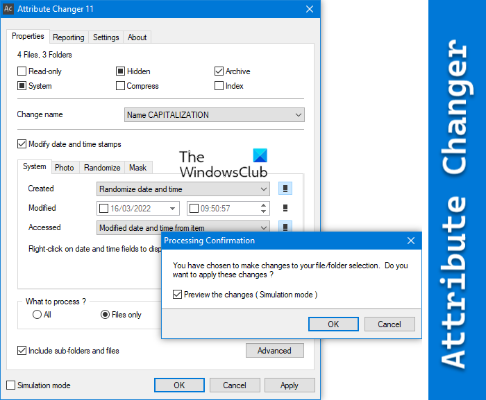 Attribute Changer le ayuda a cambiar los atributos de un archivo o carpeta en computadoras con Windows. Le ayuda a hacer que el archivo sea de sólo lectura, oculto, del sistema, etc. Por otro lado, también puede cambiar la fecha y la hora con la ayuda de esta utilidad.