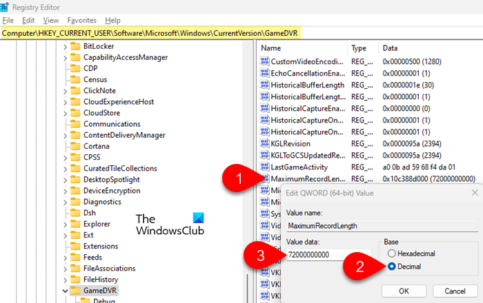 2]Cambiar la duración máxima de grabación para la barra de juegos a través del Editor del Registro