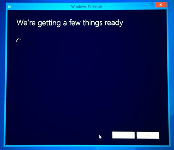 Haga clic en Aceptar para continuar. Verás unAsegurándose….mensaje. La configuración asegurará que su PC esté lista para la instalación. Si algo requiere su atención, se resaltará.
