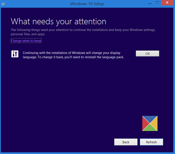 Podría ser un mensaje sobre paquetes de idiomas, centro multimedia o cualquier otra cosa. Aquí también puedes hacer clic en elElige qué conservarenlace-