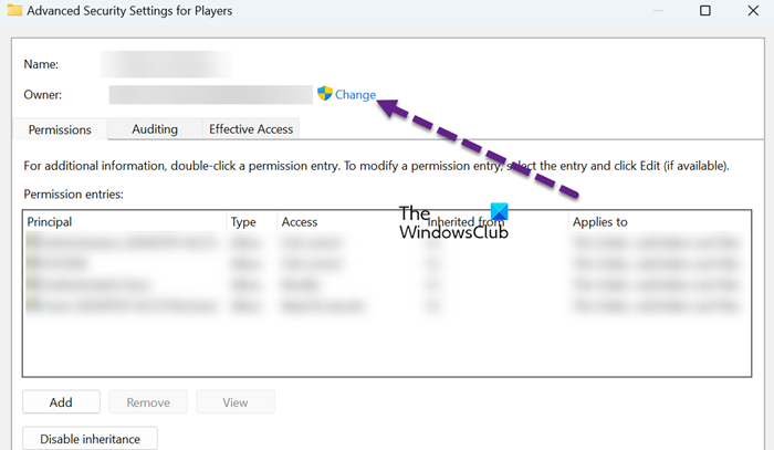 - Haga clic derecho en la carpeta Jugadores, seleccionePropiedadesy luego vaya alSeguridadpestaña.
