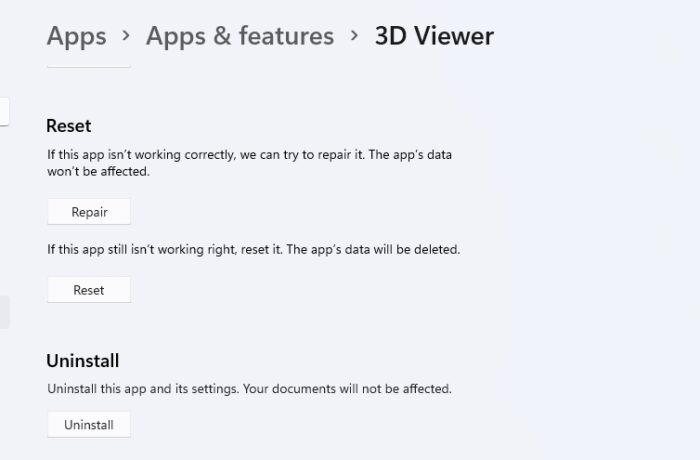 También puedes optar por restablecer la aplicación yendo a Configuración > Aplicaciones > Aplicaciones y características. Luego ubique la aplicación, haga clic en el menú de tres puntos y elija restablecer.