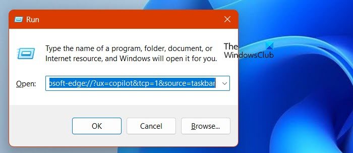 Una forma alternativa de activar Copilot es ejecutando un comando específico. Sin embargo, es importante tener en cuenta que este método sólo activa la herramienta y no restaura el icono de Copilot. Por lo tanto, si desea volver a utilizar Copilot, deberá ejecutar el comando cada vez. Inicie Ejecutar y ejecute el comando que se menciona a continuación.