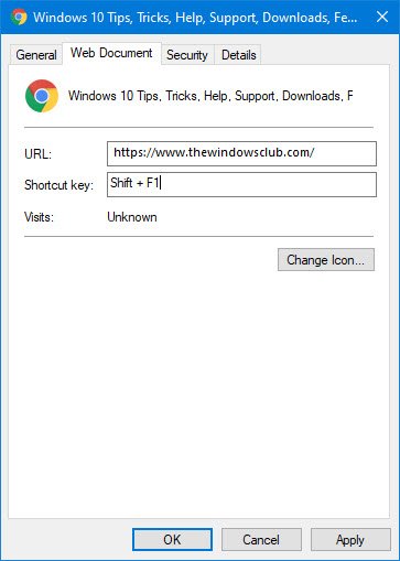 Seleccione Propiedades. Ahora en el cuadro Propiedades > pestaña Documento web, coloque el cursor en el panel de teclas de acceso directo.