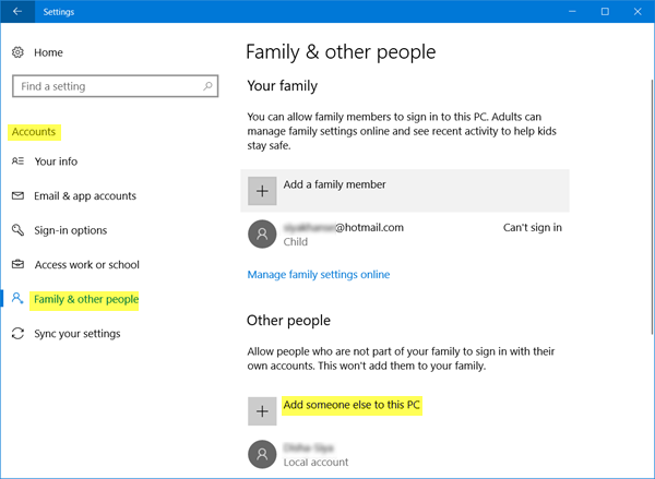A continuación, en el menú de la izquierda, haga clic enFamilia y otras personas.