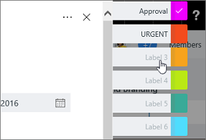 En el tablero, seleccione una tarea para abrir los detalles y luego elija los cuadros de colores en la parte superior derecha. Seleccione la bandera que desea usar y luego asígnele un nombre.