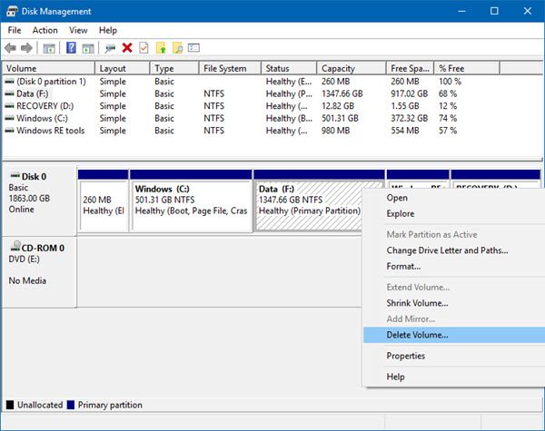 Entonces, hoy discutiremos cómo eliminar cualquier partición de almacenamiento de su computadora con Windows 11/10 usando Administración de discos, Símbolo del sistema o Windows PowerShell.