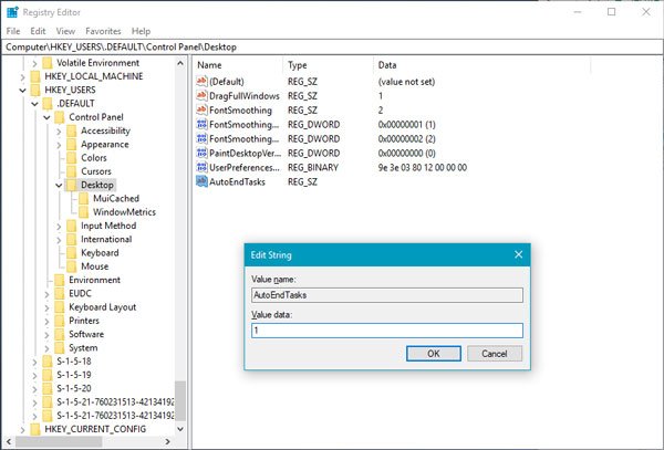 Habilitar o deshabilitar AutoEndTasks durante el apagado