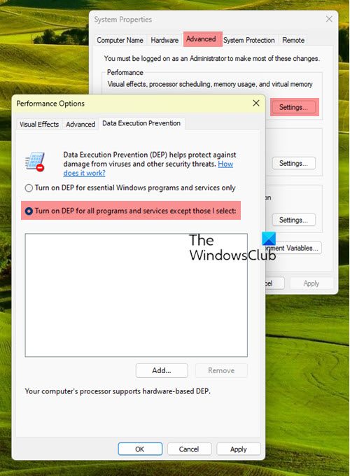 Habilite la prevención de ejecución de datos en Windows 11/10