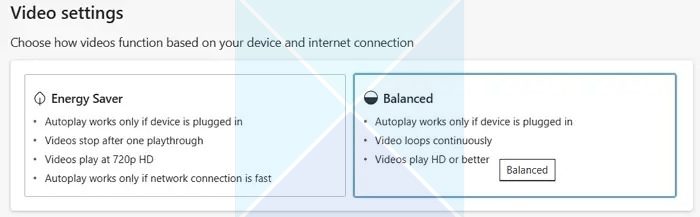 Antes de habilitar los vídeos de fondo en el navegador Edge, aquí hay dos configuraciones que debe tener en cuenta: Ahorro de energía y Equilibrado.